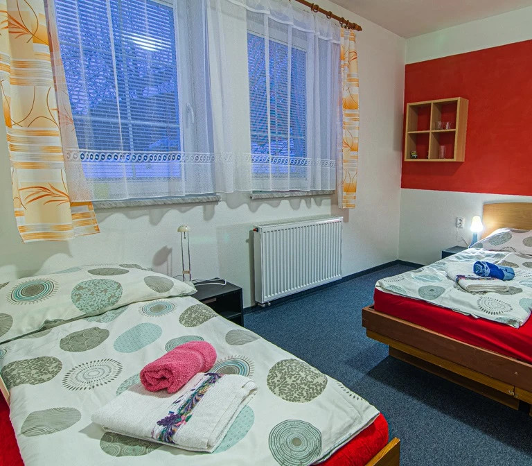 Moderní ubytování hotelového typu. Těšit se můžete na vkusně vybavené dvoulůžkové pokoje s možností přistýlek nebo na rodinný apartmán se 2 pokoji, obývacím pokojem s krbem a fotbálkem, 2 koupelnami a kuchyňkou. Ve všech pokojích je LCD televize a minibar. Pokud máte rádi projížďky na kolech, tak můžete využít cyklostezku Bečva, která je dlouhá cca 160 km. Kola vám rádi uschováme v naší uzamykatelné garáži.